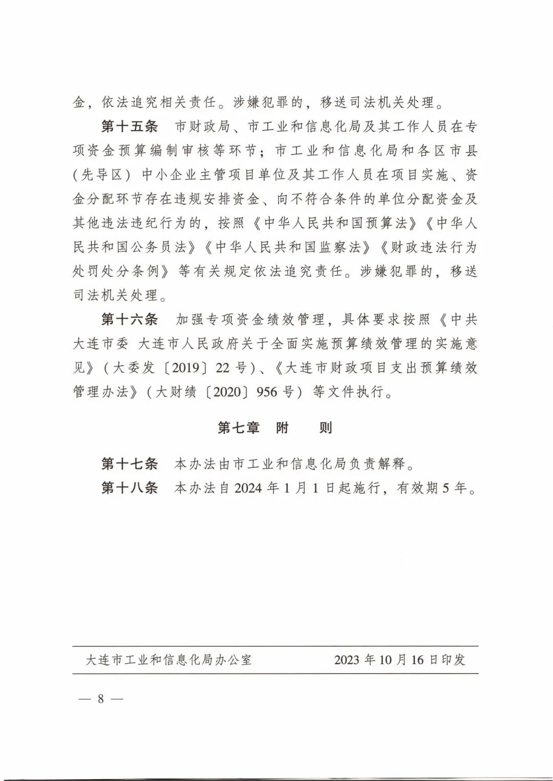 关于印发《大连市中小企业发展专项资金管理办法》的通知