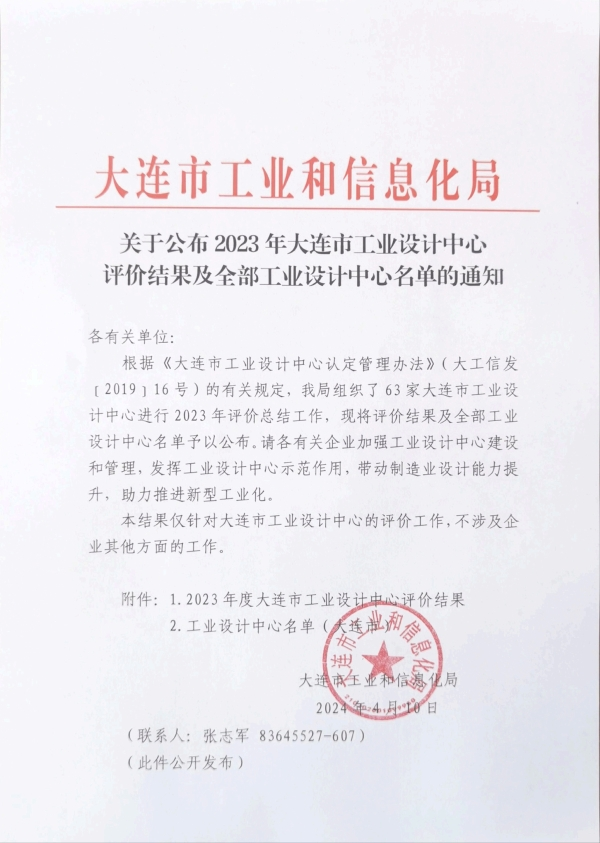 关于公布2023年大连市工业设计中心评价结果及全部工业设计中心名单的通知