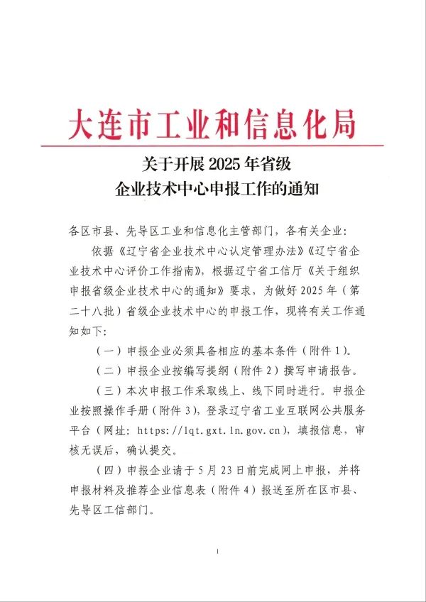 关于开展2025年省级企业技术中心申报工作的通知