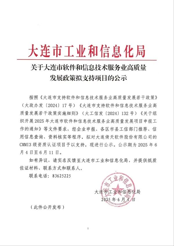 关于大连市软件和信息技术服务业高质量发展政策拟支持项目的公示