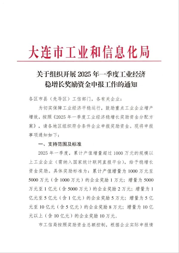 关于组织开展2025年一季度工业经济稳增长奖励资金申报工作的通知