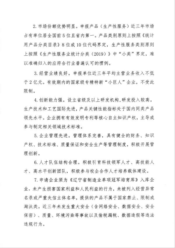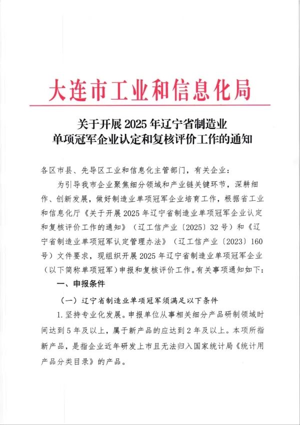 关于组织申报2025年省级制造业单项冠军企业的通知