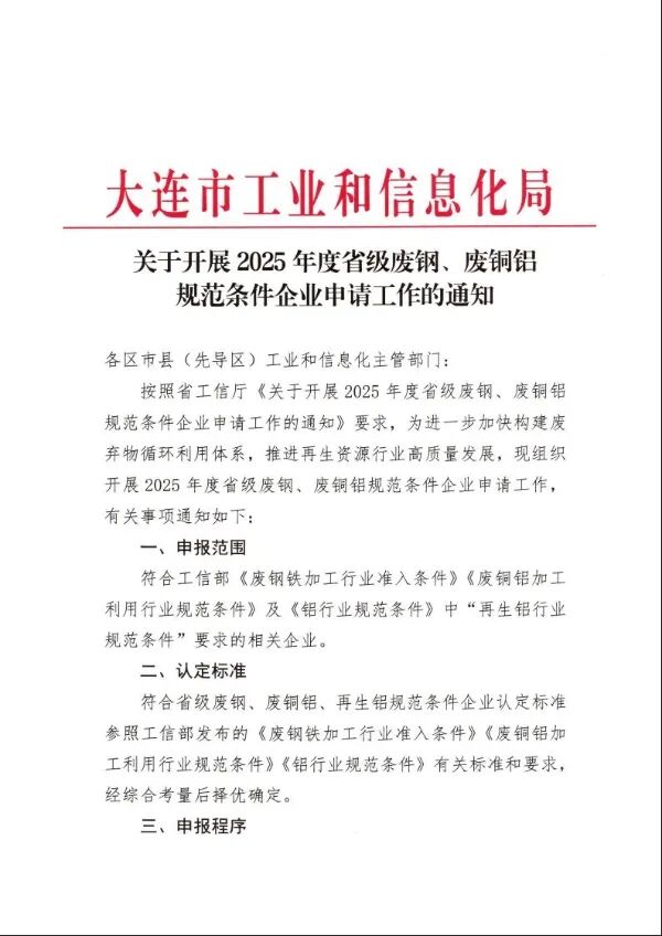 关于开展2025年度省级废钢、废铜铝规范条件企业申请工作的通知