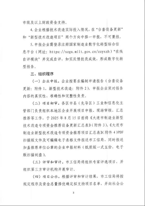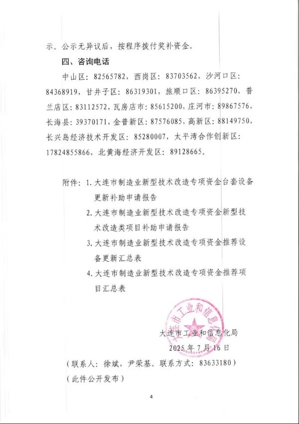 附件1.大连市制造业新型技术改造专项资金台套设备更新补助申请报告 .docx 附件2.大连市制造业新型技术改造专项资金新型技术改造项目资金申请报告.docx 附件3.大连市制造业新型技术改造专项资金推荐设备更新汇总表 .xlsx 附件4.大连市制造业新型技术改造专项资金推荐项目汇总表.xlsx 来源: 大连市工业和信息化局