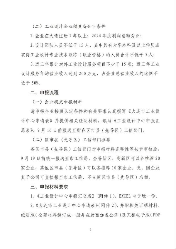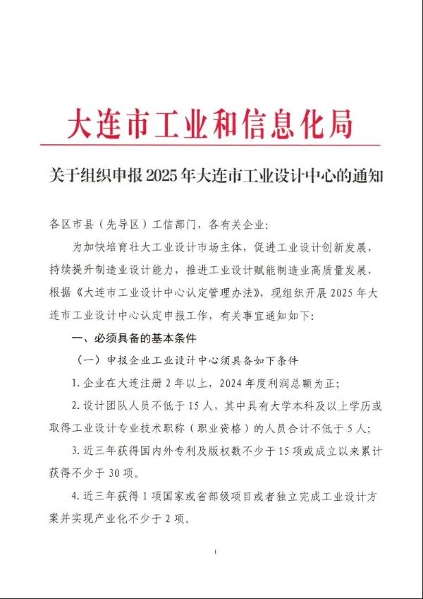 关于组织申报2025年大连市工业设计中心的通知
